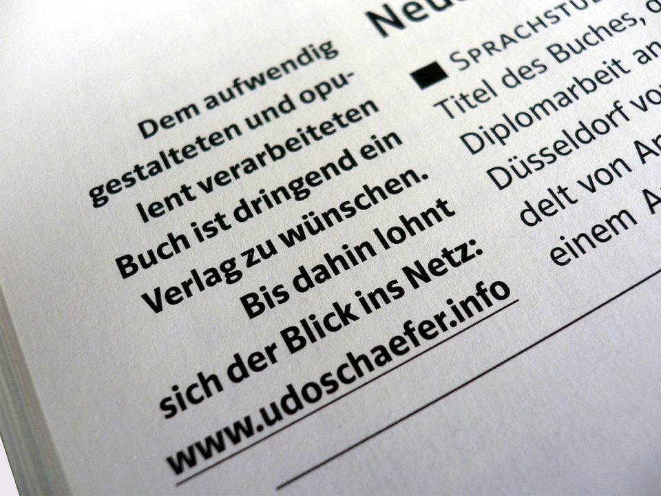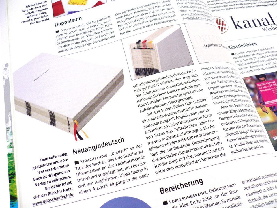 Sprachstudie — „Deutsch“ so der Titel des Buches, das Udo Schäfer als Diplomarbeit an der Fachhochschule Düsseldorf vorgelegt hat, und es handelt von Anglizismen. Diese haben in einem Ausmaß Eingang in die deutsche Sprache gefunden, dass deren Erhalt gefährdet scheint. Hier mag sich der Eindruck von deutschtümelndem nationalistischem Denken aufdrängen, doch Schäfers Mammutprojekt ist von aufklärerischem Geist geprägt.