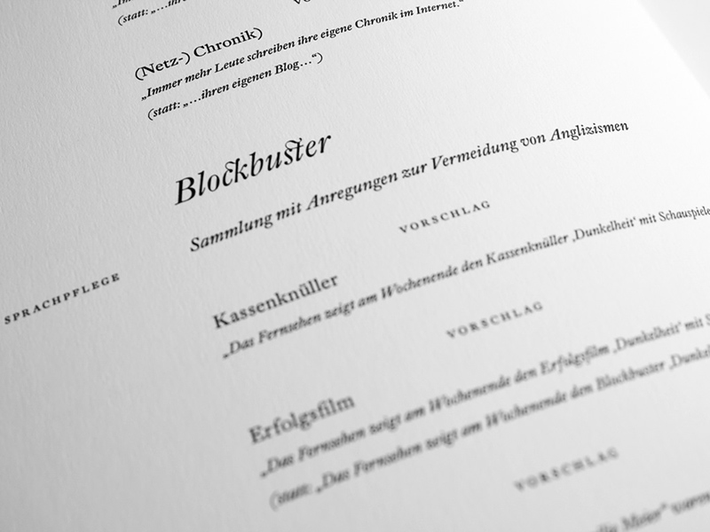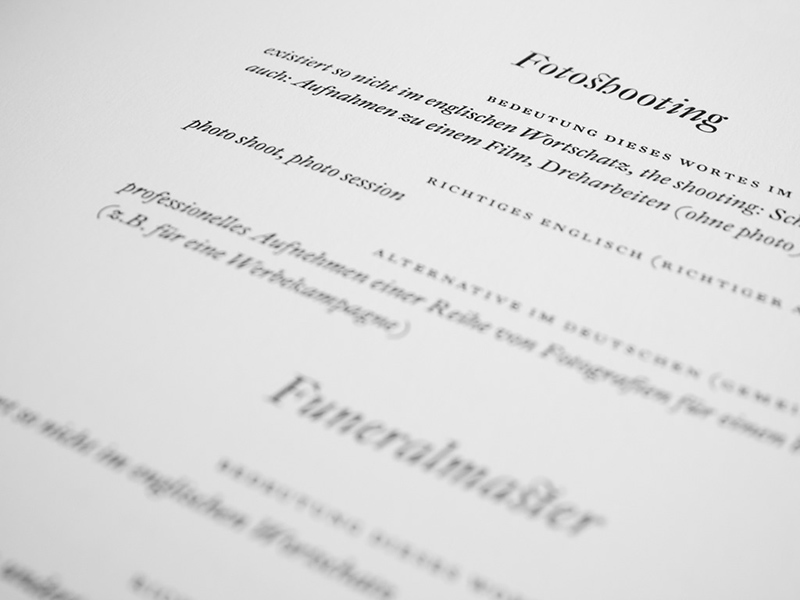 Hinsichtlich des Anglisierungsfortschritts in der deutschen Sprache hat sich Udo dem Thema „Deutsch – Anglizismus und Konsequenz“ gewidmet und ein Buchprojekt im Rahmen seiner Diplomarbeit konzeptionell sowie gestalterisch entworfen.