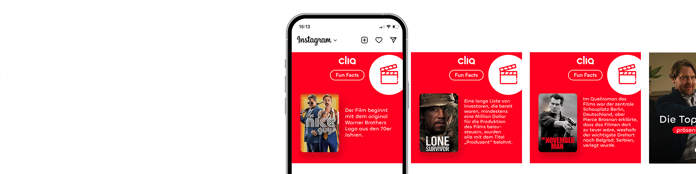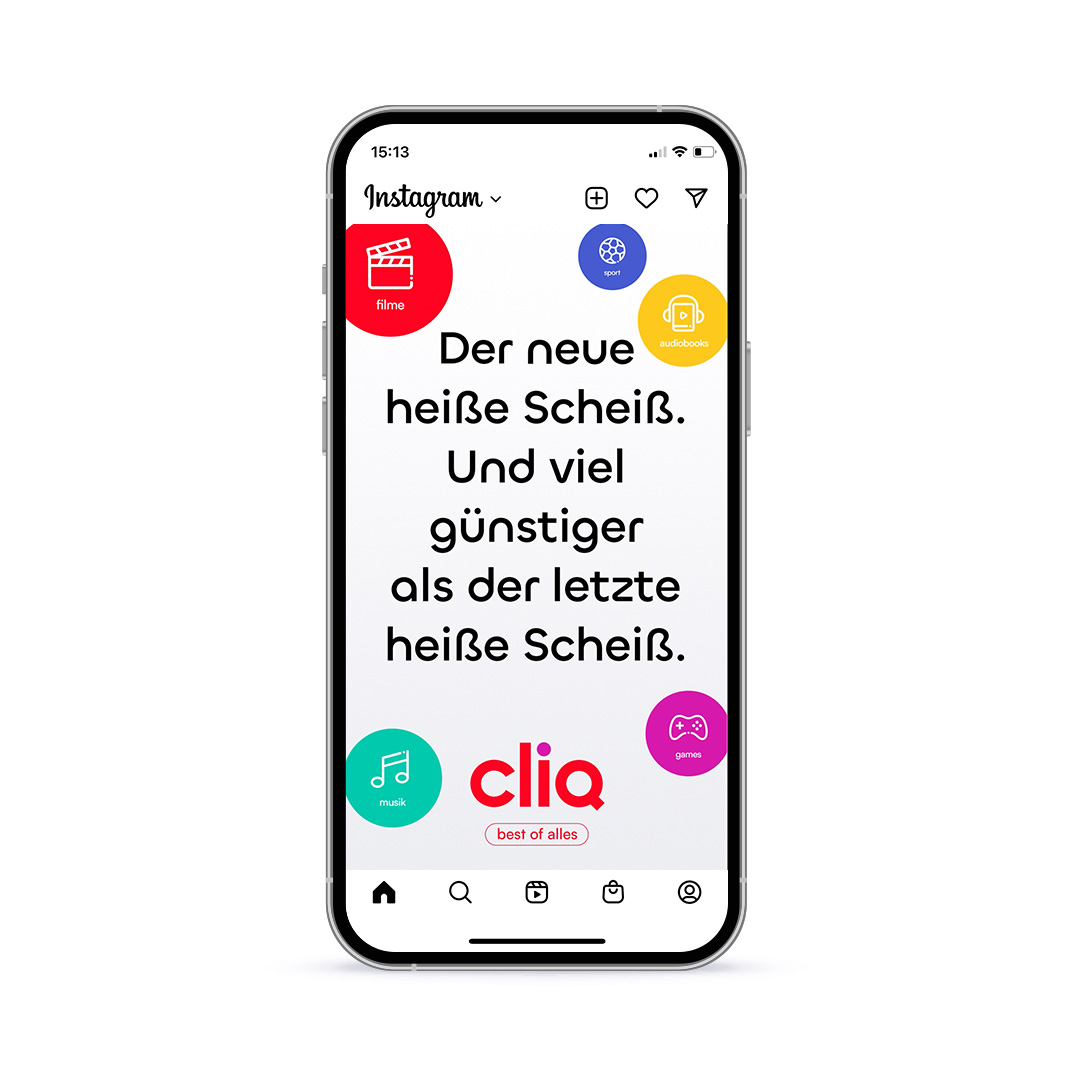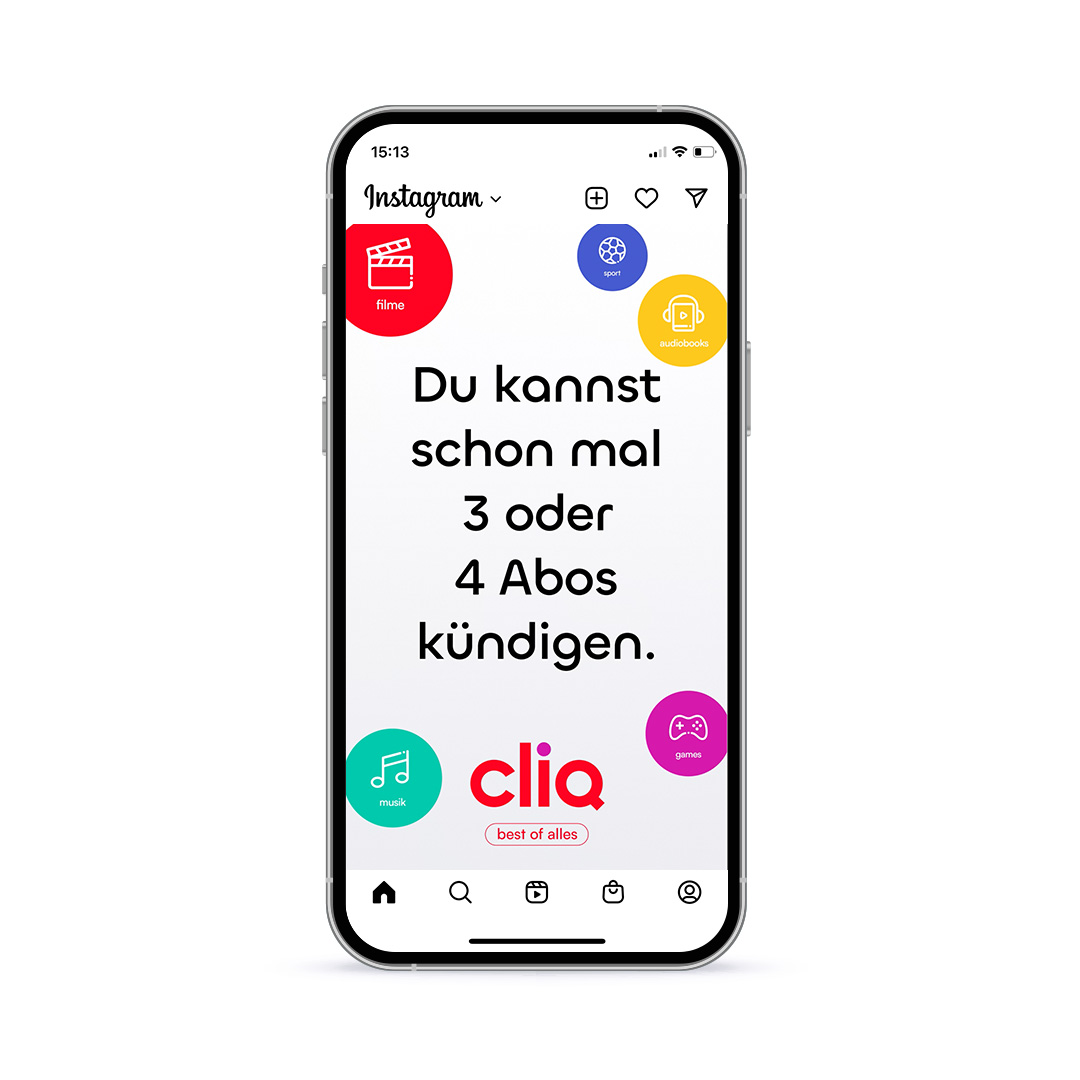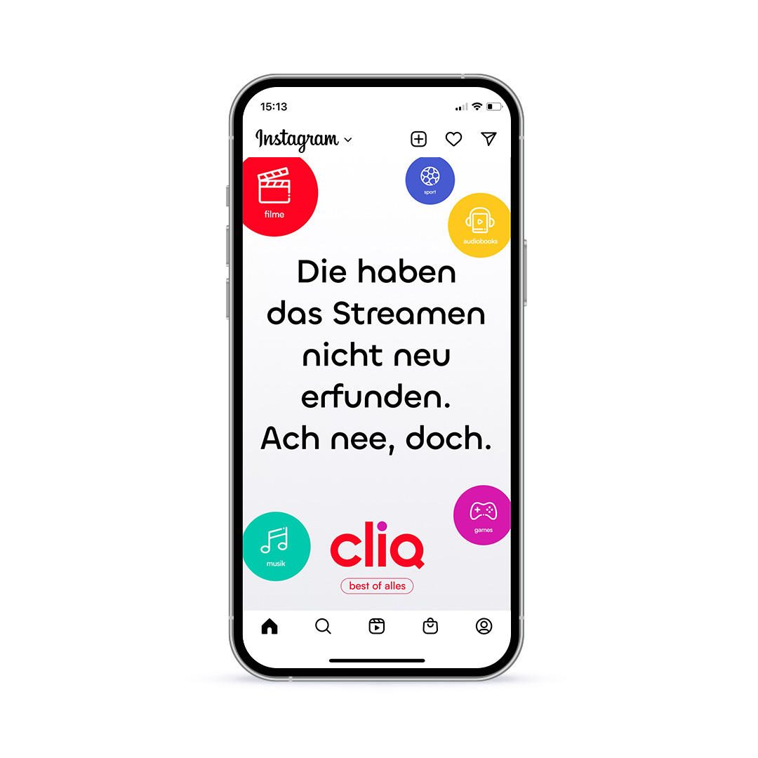 Die Launch-Kampagne umfasste sechs TV-Spots, mehr als 50 Social-Media- Assets, 8 digitale und Out-of-Home-Werbemittel sowie diverse Online-Video-Ads. Die Zielsetzung war hierbei, die Endkunden davon zu überzeugen, dass sie bei Cliq wirklich alles finden, was sie suchen und die Positionierung als Streaming Discounter für Serien, Bücher, Musik, Filme und Games zu etablieren und erlebbar zu machen.