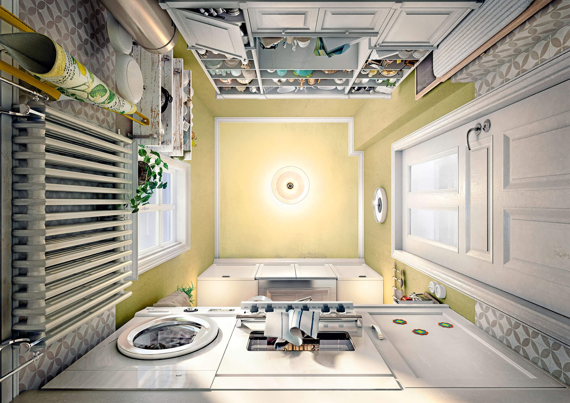 Kampagne für das Insektizid Cucal, die die Räume eines Hauses aus der Perspektive einer toten Schabe zeigt.