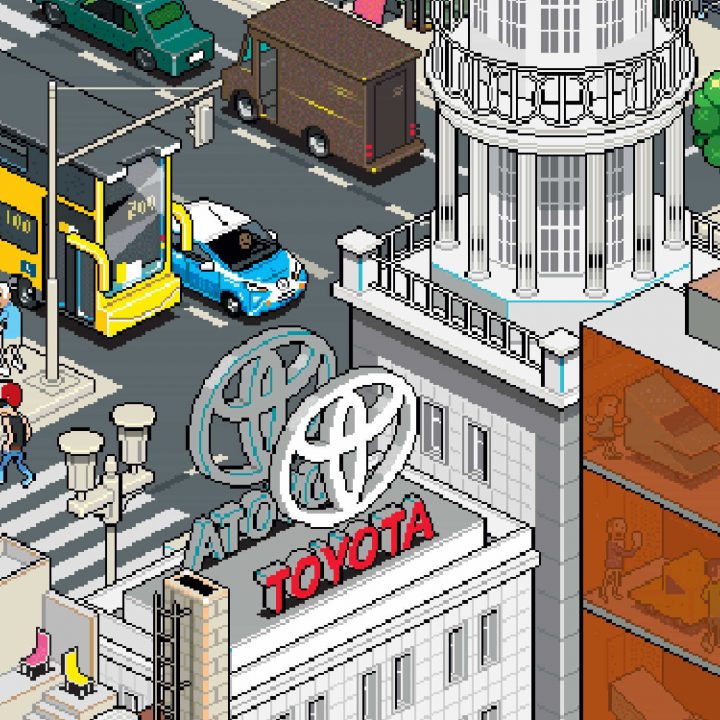 Für mehr Fahrspass. Weniger planen, mehr erleben. Das ist der neue Toyota Aygo. Mit seinem jugendlichen Design spricht er eine junge Zielgruppe an. Diese können in einem Pixorama / Wimmelbild von Berlin viele Details des Aygo, aber auch andere Dinge entdecken, die man auf den ersten Blick nicht vermutet.